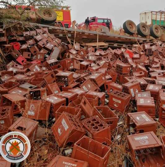 Un Camion-remorque transportant des caisses de boisson a renversé son contenu sur deux motocyclistes dans le village de Malegretenga, à 05 km du carrefour de Nagreogo, sur la Route Nationale N°4.