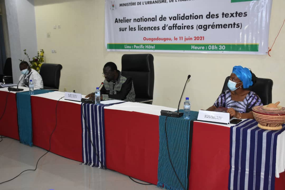 « Mon département, dans sa politique d’accompagnement des acteurs du secteur, délivre à ce jour sept (07) types d’agréments dans les domaines d’intervention tels que la mission d’expertise immobilière; la mission d’ingénierie du bâtiment; la mission de géomètre expert; la profession d’urbaniste; la profession d’architecte; l’entreprise de bâtiment; et la promotion immobilière», a rappelé le ministre en charge de l’Urbanisme, avant de préciser que « les travaux du jour concernent six (06) des agréments cités ci-dessus, car celui sur la promotion immobilière fera l’objet de relecture dans le cadre de la révision en cours de la loi n°057-2008/AN du 20 novembre 2008 portant promotion immobilière au Burkina Faso et ses décrets d’applications».