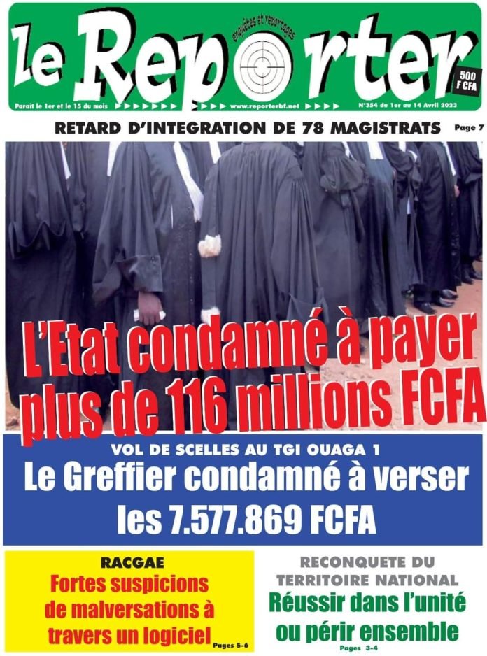 Le journal est disponible chez les revendeurs et aussi sur le site www.reporterbf.net
