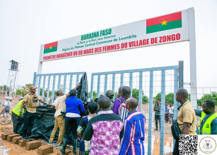 (Loumbila, 1er mai 2025). Le Directeur de cabinet du Président du Faso, le Capitaine Martha Céleste Anderson Dekomwin Medah a procédé, ce jeudi à la réception officielle des travaux d’aménagement du site maraîcher du 8-Mars des femmes du village de Zongo, dans la commune de Loumbila, région du Plateau-Central.