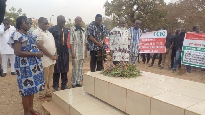 Le Collectif des organisations démocratiques de masse et des partis politiques (CODMPP) et la Coalition nationale de lutte contre la vie chère, la corruption, la fraude, l’impunité et pour les libertés (CCVC) ont sacrifié à la tradition en se rendant au Cimetière municipal de Goughin, ce samedi 13 décembre 2025, pour se recueillir sur la tombe de Norbert Zongo. Ce jour, faut-il le souligner, commémore le 27e anniversaire de l’assassinat de l’illustre journaliste. C’est sous le sceau de « la persévérance et de la résilience » que ces organisations commémorent ce triste anniversaire qui sert de cadre pour réclamer vérité et justice pour Nobert Zongo et ses compagnons d’infortune, pour Flavien Nébié, pour les victimes de l’insurrections populaires, celles du putsch de 2015 et autres.