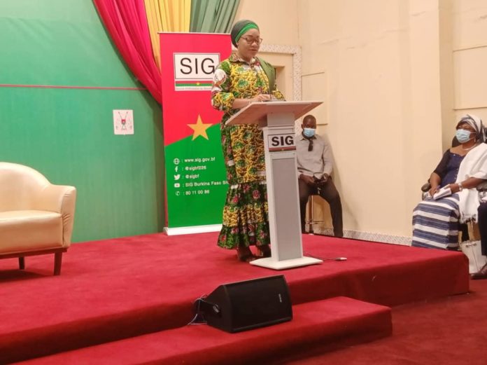 Hélène Marie Laurence Ilboudo/ Marchal, ministre de la Femme, de la solidarité nationale, de la famille et de l’action humanitaire a tenu ce 25 février 2021 une conférence de presse en prélude à la célébration du 8 Mars 2021au Burkina. La conférence s’est tenue à la salle de conférence du Service d’Information du Gouvernement (SIG).