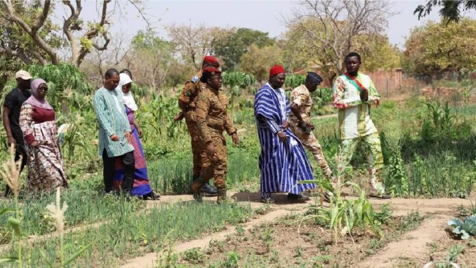 En marge de la commémoration de la 168ème journée internationale des droits de la femme à Dédougou, la ministre de l’Action humanitaire et de la Solidarité nationale, le Commandant Passowendé Pélagie Kaboré, à la tête d’une délégation gouvernementale composée de la ministre en charge de la Transition digitale Dr Aminata Zerbo/Sabané, du ministre de l’Urbanisme et de l’Habitat Monsieur Mikaïlou Sidibé, du Chef d’Etat-major général des Armées, le Général de Brigade Moussa Diallo et du Gouverneur de la région de la Boucle du Mouhoun, l’Inspecteur général de Police Babo Pierre Bassinga, a effectué une visite guidée sur la ferme agroécologique polyvalente de Moundasso.