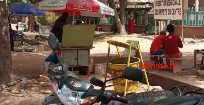 Nous sommes cette fois-ci au 16 mars 2021. Ce jour-là, nous nous sommes rendus à la Direction régionale des Impôts du Centre pour voir comment les choses s’y passent. Il était 10h45, après un contrôle à l’entrée où notre carte d’identité est récupérée, nous avançons dans la cours de la direction. A priori, rien de spécial, quelques usagers dans les bureaux pour différentes prestations. Mais nous constatons que le service a un kiosque qui permet aux agents de mettre quelque chose sous la dent, quelle que soit l’heure. Nous nous dirigeons vers ce kiosque. Nous y passons quelques temps.