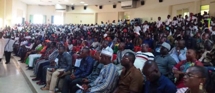 Venus des quatre coins du Burkina (tous les arrondissements de Ouagadougou et ses communes environnantes, Bobo-Dioulasso, Banfora, Dedougou, Koudougou…) pour marquer leur présence à leur AG, les élèves et étudiants ont envahi le Palais de la culture Jean-Pierre Guingané. Mobilisation qui a rejoui leur responsable national, Luc Arnaud Compaoré. Par ailleurs, c’etait l’occasion pour ce dernier de faire le bilan des activités menées en faveur des jeunes. Entre autres, s’est-il félicité du recrutement de nouveaux militants dans les écoles, universités et instituts, du renforcement des capacités des anciens militants, de la mise en place de nouvelles structures. Ainsi, justifie-t-il la mobilisation des jeunes par la réussite des ces actions sus-citées. Par cette mobilisation, Luc Arnaud Compaoré et ses camarades entendent apporter leur « soutien inconditionnel et indéfectible au président Kaboré» pour une « victoire éclatante aux élections de 2020» car selon eux « le peuple ne s’est pas trompé en votant Roch Marc Christian Kaboré » en 2015.