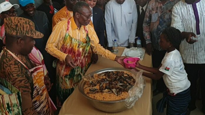 Le premier ministre Dr Apolinaire Joachimson Kyélem de Tambela, a procédé ce samedi 25 novembre 2023, au lancement du programme intégré de soutien à l’alimentation et à la nutrition scolaires (PISANS). Ce programme initié par quatre partenaires de l’Etat burkinabè dont l’Organisation des Nations Unies pour l’alimentation et l’agriculture (FAO), le programme alimentaire mondial (PAM), l’UNICEF et le Fonds des nations unies pour le développement de l’agriculture (FIDA), vient en soutien à l’initiative Présidentielle « Assurer à chaque enfant en âge scolaire au moins un repas équilibré par jour ».