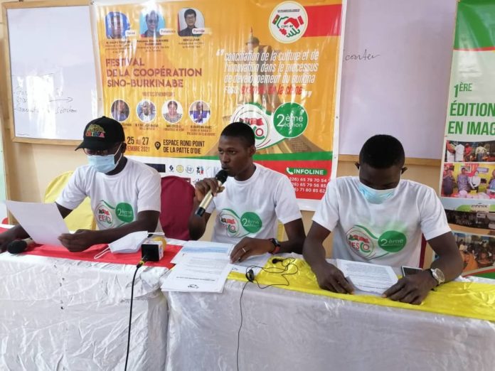 Le Club des Jeunes pour la Promotion de la coopération Sino-Burkinabè (CJPC-BF) a tenu une conférence de presse ce 20 novembre pour annoncer la tenue du Festival de la Coopération Sino-Burkinabè (FESCO-SB). Un festival qui se tiendra les 25, 26 et 27 novembre 2021 à l’espace du rond-point des droits humains de la Patte-d’Oie.