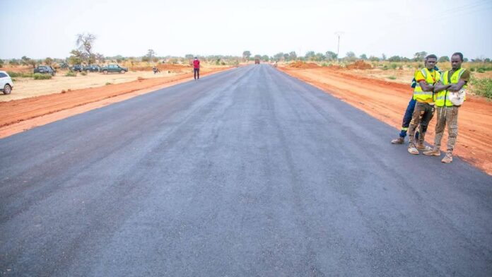 Le jeudi 8 janvier 2026, une de nos équipes est allée faire le constat. Sur place, les agents de la brigade Faso Mêbo des Koulsé s’apprêtent à poser la couche de roulement sur la route déjà terrassée par le Génie militaire. Toute la logistique est en branle: la goudronneuse, les camions remplis de bitume, les citernes, les compacteurs, entre autres, avec ces hommes et femmes enthousiastes sous la conduite technique du Capitaine Ripper Ulrich Benin.