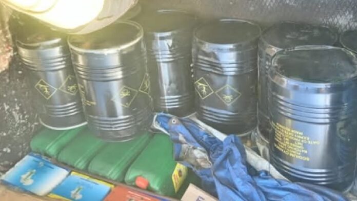 Le 22 novembre 2025, sur l’axe Bobo-Banfora, un renseignement rigoureusement exploité a conduit à la découverte de plus de vingt mille (20 000) plaquettes de médicaments prohibés, savamment dissimulées dans des cavités aménagées au sein d’un car de transport en commun en partance pour un pays voisin. La valeur de cette marchandise est estimée à environ trente millions (30 000 000) de francs CFA. Quelques instants plus tard, sur le même itinéraire, une autre information judicieusement traitée a permis l’interception de dix (10) fûts de cyanure dissimulés sous des sacs de sucre et d’engrais dans un camion de sept tonnes, pour une valeur d’un million cinq cent mille (1 500 000) francs CFA.