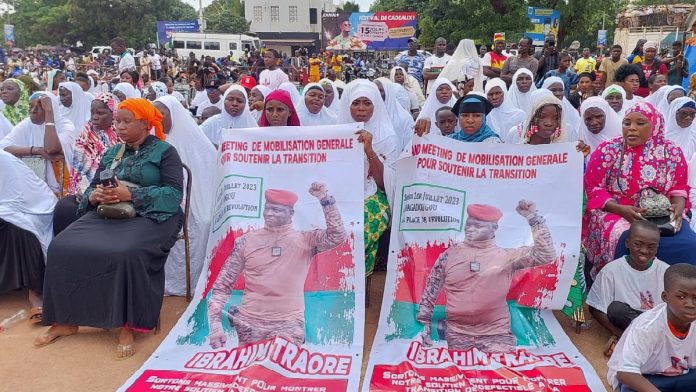 La Coalition des Forces vives de la région des Hauts-Bassins a organisé dans la matinée de ce samedi 1er juillet 2023, un meeting de soutien au capitaine Ibrahim Traoré et la transition. C’était à la place Tiefo Amoro de Bobo-Dioulasso.