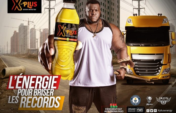 IRON BIBY le grand champion du monde en levée de poids a associé son image à la boisson énergétique X-plus depuis le lancement de cette boisson en 2018.