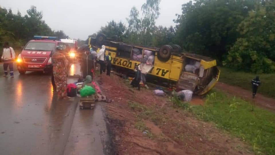 Ce jeudi 10 octobre 2019 à 6h03 Min, la 2ème Compagnie de la Brigade Nationale de Sapeurs Pompiers basée à Bobo-Dioulasso, a été alertée pour un car de transport en commun, en partance pour le Niger, renversé seul sur la RN1, à la sortie de la ville de Bobo-Dioulasso peu avant le poste de péage.