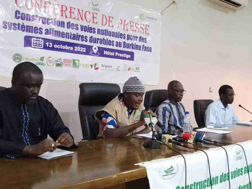 Une coalition d’Organisations de la société civile et ses partenaires (SPONG, CPF, CNABio, Partenaires du Programme Yooab Laada) avec la participation du gouvernement a organisé, ce jeudi 13 octobre 2022, un atelier suivi d’un point de presse à Ouagadougou. Cet atelier vise à opérationnaliser la feuille de route du Burkina pour « la construction des systèmes alimentaires durables, équitables et résilients devant soutenir l’agenda 2030 des Nations unies. »