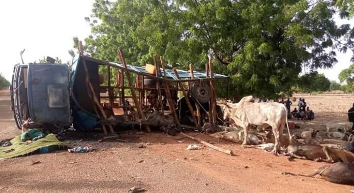 En effet, il s’agit d’un camion remorque qui transportait du bétail et des personnes qui s’est renversé, occasionnant ainsi deux decès et 10 blessés évacués par les Sapeurs-Pompiers.