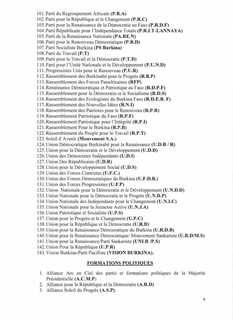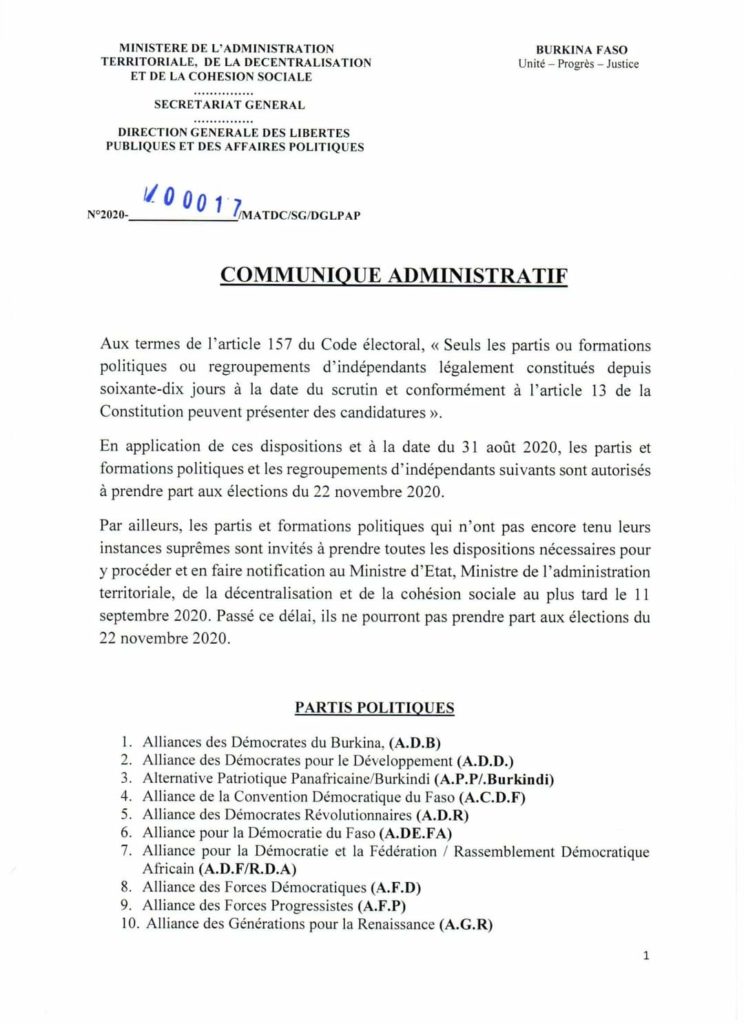 Burkina/Elections: Voici les partis qui peuvent présenter des candidats