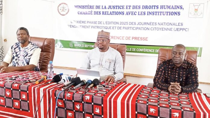 En prélude au lancement officiel de la deuxième phase des journées nationales d’engagement patriotique et de participation citoyenne (JEPPC), le ministre de la Justice et des droits humains chargé des relations avec les institutions, Me Edasso Rodrigue Bayala a dévoilé ce mardi 23 septembre 2025 à Ouagadougou le contenu de cette mesure gouvernementale. Placée sous le thème : « Pour l’ordre et la discipline : je m’engage ! », cette deuxième phase vise à consolider les acquis en la matière et à davantage booster la prise de « conscience patriotique nationale ».