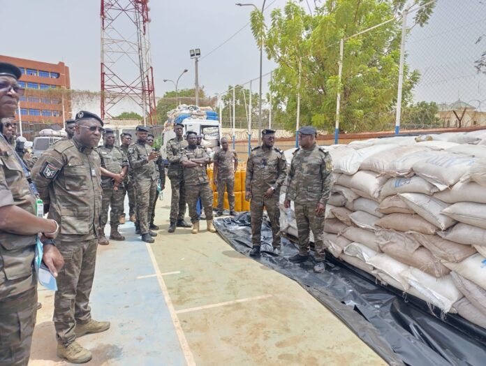 Parmi les principales prises, on retrouve des denrées alimentaires de grande consommation : 105 tonnes 625 kg de sucre (valorisé à 300,8 millions F CFA), 819 bidons d’huile alimentaire (14,8 millions F CFA), ainsi que 200 cartons de spaghettis, 80 cartons de tomates ou encore 100 cartons de biscuits.
