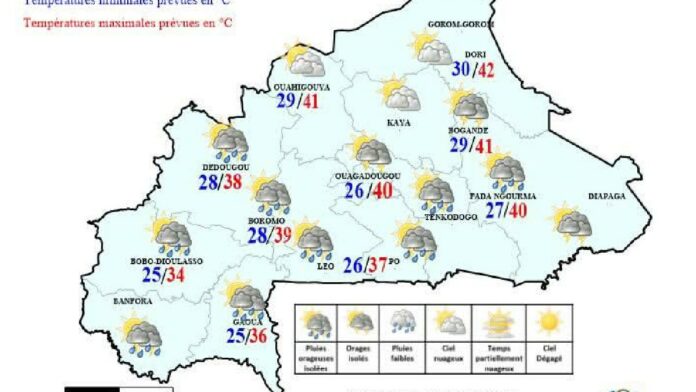 Températures prévues : Minimales les plus basses : 25°C à Bobo-Dioulasso et à Gaoua