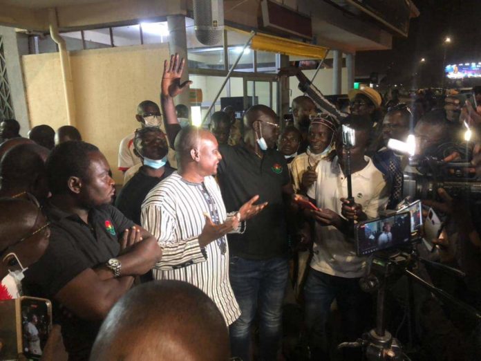 Il faut le dire, bon nombre de mouvements et d’acteurs de la société civile se sont mobilisés en nombre pour accueillir l’activiste. Des membres du Mouvement Sauvons le Burkina, des connaissances et proches de l’activiste arborant des T-shirts estampillés « Ibrahima Maïga Porte Flambeau d’une jeunesse consciente du Burkina Faso« , se sont mobilisés sur place pour l’accueillir.
