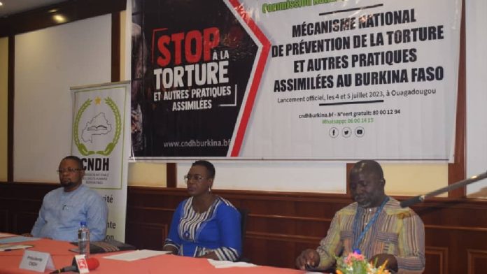 La Commission nationale des Droits humains (CNDH) a procédé au lancement du mécanisme national de prévention de la torture et des pratiques illicites assimilées, ce mardi 04 juillet 2023 à Ouagadougou. Le programme qui vise à faire connaître au grand public le rôle de la CNDH en matière de prévention de la torture au Burkina Faso, à discuter des améliorations ainsi que des insuffisances constatées lors des visites, a fait l’objet d’un atelier qui a vu la participation d’acteurs de la chaîne pénale.