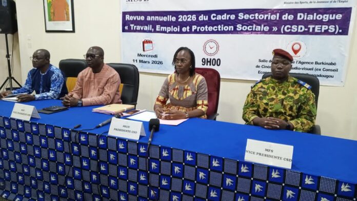 La ministre des Sports de la jeunesse et de l’emploi, Annick Pikbougoum/Zingué Ouattara, a présidé, ce mercredi 11 mars 2026 à Ouagadougou la revue annuelle 2026 du cadre sectoriel de dialogue « Travail, emploi et protection sociale » (CSD-TEPS).