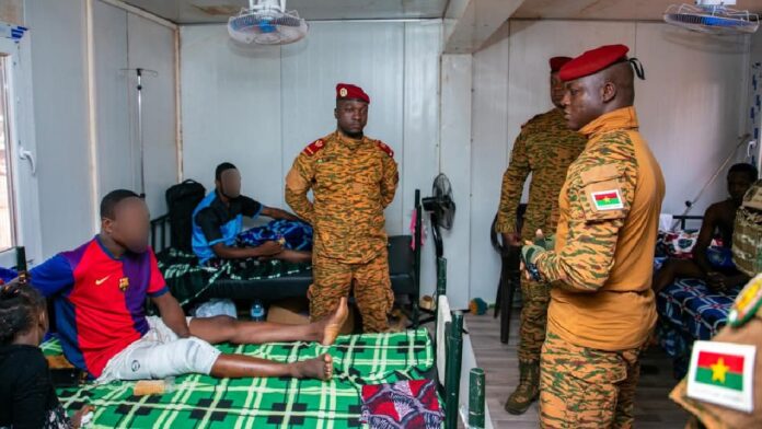 (Bobo-Dioulasso, 23 mai 2025). Dans la matinée de ce 23 mai 2025, le Capitaine Ibrahim TRAORÉ, Président du Faso, Chef de l’État a visité l’hôpital militaire Tanguet-Ouattara, situé au sein du camp Ouezzin-Coulibaly, pour encourager le personnel et donner des orientations pour une meilleure prise en charge des blessés et des malades.