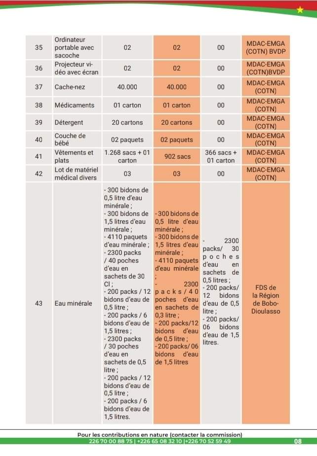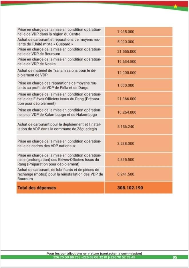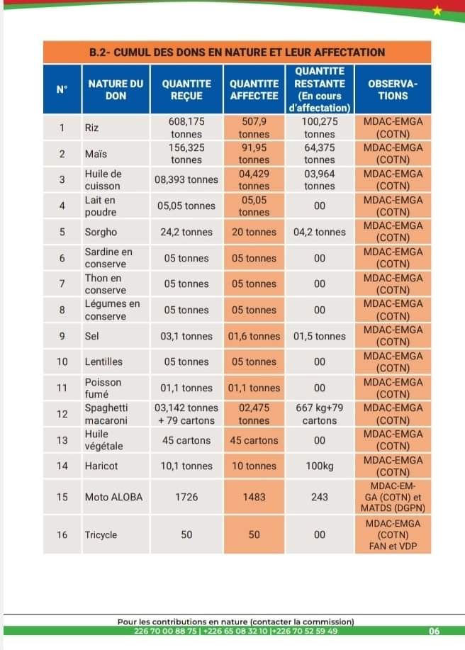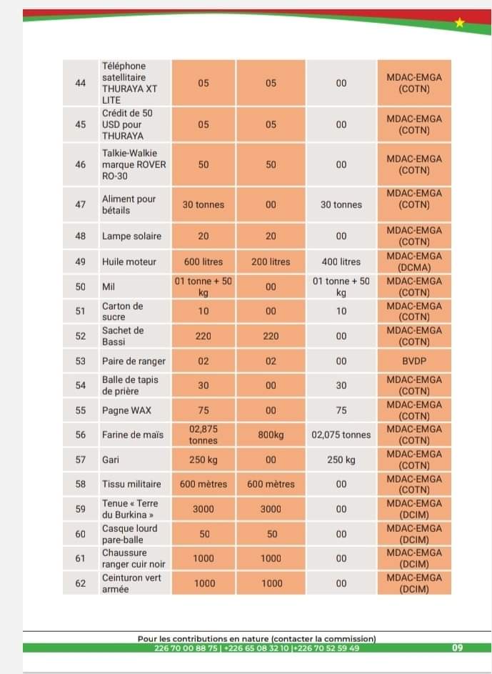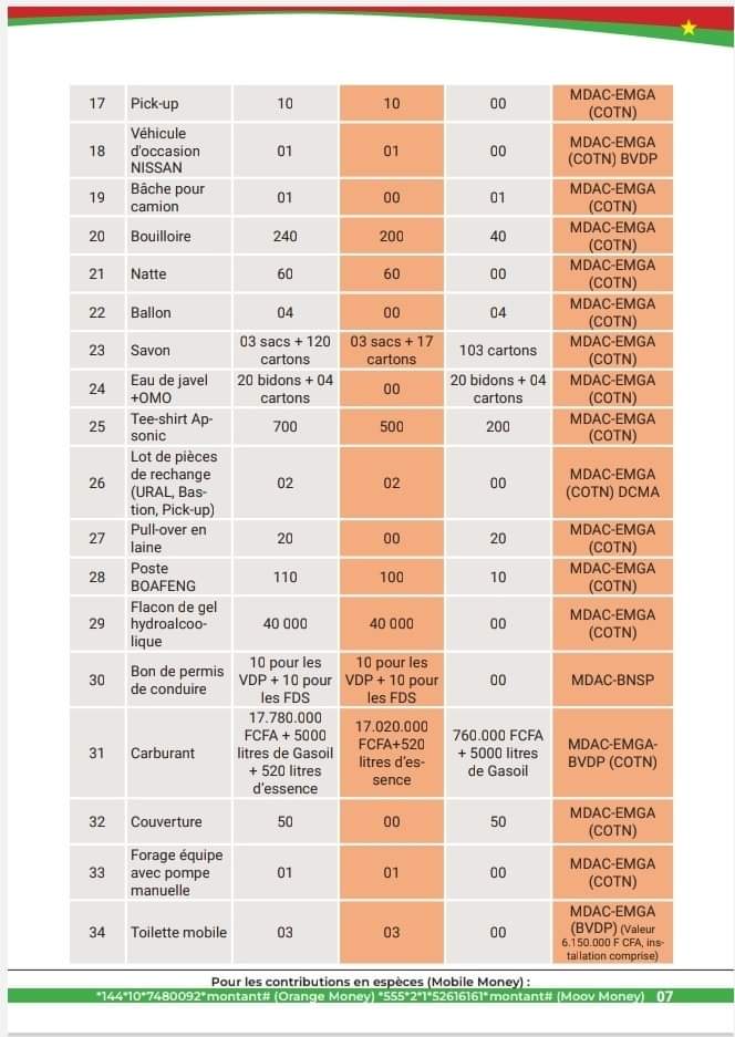 La mobilisation pour les contribution Volontaires à l’effort de guerre continue. Dans le dernier bilan mensuel publié par la Présidence du Faso, ce mardi 22 août 2023, les dons en espèces s’élèvent à 48 942 268 F CFA.