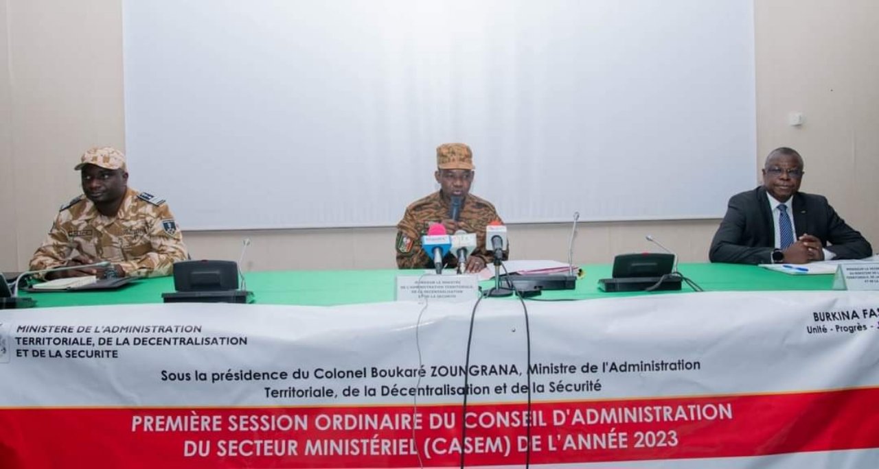 Le Ministère de l’Administration territoriale de la Décentralisation et de la sécurité a ouvert la première session ordinaire du Conseil d’Administration du Secteur ministériel (CASEM) 2023, ce jeudi 16 février 2023 à Ouagadougou, sous la présidence du Colonel Boukaré Zoungrana, chef dudit département ministériel et du Ministre délégué à la sécurité, Mahamadou Sana, Commissaire principal de police.