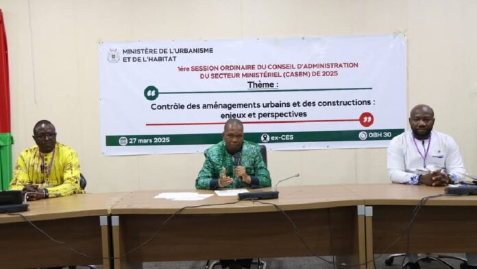 Le Ministère de l’Urbanisme et de l’Habitat a tenu la 1re session ordinaire de son Conseil d’administration du secteur ministériel (CASEM), ce jeudi 27 mars 2025, à Ouagadougou. Avec les acteurs de son département, le ministre Mikaïlou Sidibé a scruté les enjeux et les perspectives du contrôle des aménagements urbains et des constructions. Pour cette année 2025, le ministère de l’Urbanisme entend mettre l’accent sur l’apurement du passif foncier et la construction de logements sociaux.