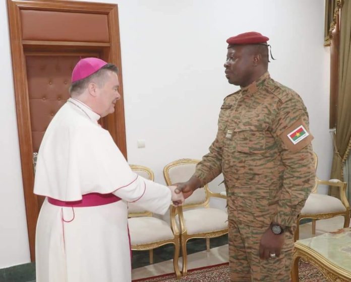 Le Président du Faso, le Lieutenant-colonel Paul-Henri Sandaogo Damiba, a reçu en audience le Nonce apostolique auprès du Burkina Faso, Monseigneur Michael Francis CROTTY, ce lundi 18 juillet en fin de matinée.