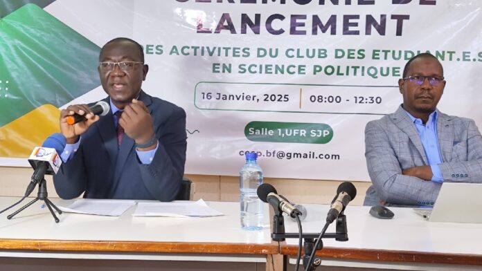 Au cours du lancement des activités du Club d’étudiants en science politique (CESP), le Pr. Augustin Loada, « architecte », acteur majeur de l’implémentation de la science politique au Conseil africain et malgache pour l’enseignement supérieur (CAMES), a donné une leçon sur la discipline. Il a fait un tour d’horizon sur l’histoire de la science politique en France, en Afrique, dans l’espace CAMES et au Burkina Faso. C’était ce jeudi 16 janvier 2025 à l’Université Joseph Ki-Zerbo, en présence de plusieurs étudiants et personnalités, dont l’ancien ministre de la défense, Gal Barthelemy Simporé.