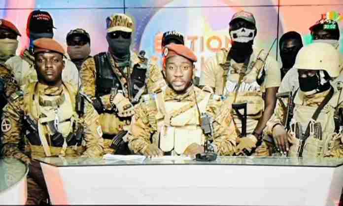 Le capitaine Ibrahim Traoré a renversé ce vendredi 30 septembre 2022, Paul-Henri Sandaogo Damiba, qui était au pouvoir depuis le coup d’État du 24 janvier dernier. Un officier a annoncé à la télévision nationale, la destitution de Paul-Henri Sandaogo Damiba à la tête du Mouvement patriotique pour la sauvegarde et la restauration (MPSR) et son remplacement à la tête du MPSR par Ibrahim Traoré. « Nous avons décidé de prendre nos responsabilités, animés d’un seul ideal, la restauration de la sécurité et de l’intégrité du territoire »,ont annoncé les militaires qui ont pris d’assaut la télévision nationale pour leur déclaration.