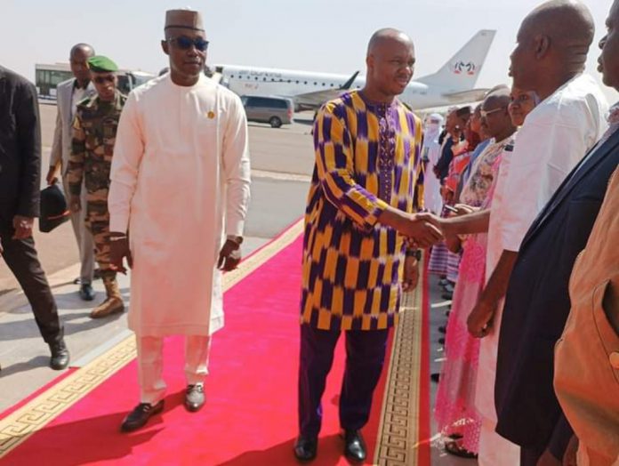 Il a été accueilli à l’aéroport par son homologue, le président du Conseil national de la transition, son Excellence Malick Diaw.
