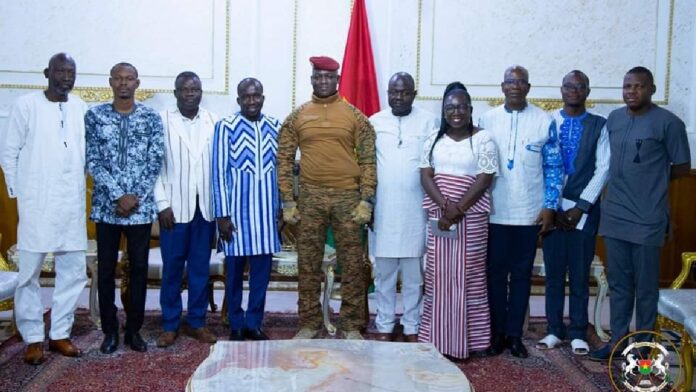 (Ouagadougou, 13 novembre 2023). Le Président de la Transition, Chef de l’Etat, le Capitaine Ibrahim Traoré, a reçu en audience ce lundi matin, le Conseil national de l’économie informelle du Burkina Faso. Accompagné du ministre en charge de la jeunesse, Boubakar Savadogo, les membres du conseil sont venus échanger avec le Chef de l’Etat sur la problématique de l’insertion socioprofessionnelle des jeunes.
