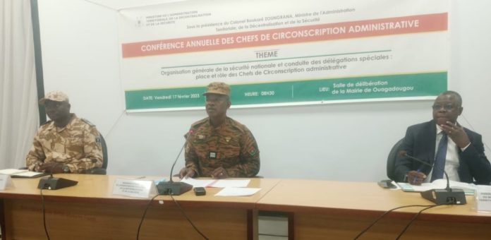 Pour « une meilleure responsabilisation » des Chefs de circonscription administrative (CCA), que sont les Gouverneurs, les Hauts-commissaires et les Préfets, acteurs clés de la gouvernance locale, il a été organisé la conférence annuelle des CCA autour du thème : « Organisation générale de la sécurité nationale et conduite des délégations spéciales : place et rôle des chefs de circonscriptions administratives ». Ce thème revêt, pour le ministre Boukaré Zoungrana, un intérêt capital qui s’inscrit dans la vision du Chef de l’Etat, à savoir, relever les défis en matière de recouvrement du territoire et de sécurisation du pays. Pour ce faire, de nouveaux référentiels de sécurité nationale ont été élaborés, dont la Politique de sécurité nationale (PSN) et l’architecture de la sécurité nationale.