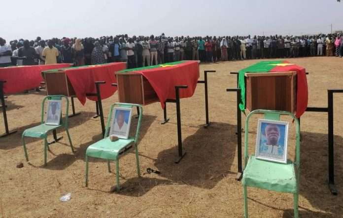 Il est 10heures. Un grand monde, dans le recueillement et le silence massé autour du Centre Hospitalier régional de Tenkodogo. Devant ces hommes et femmes affligés, cinq cercueils couverts de l’emblème national.