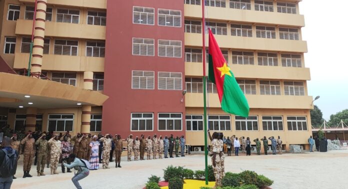 Le drapeau burkinabè flotte au sein de la Direction générale de la Police nationale. Les Soldats l’ont fait monter en entonnant l’hymne de la victoire, le Dytaniè. À l’initiative de la hiérarchie militaire, la cérémonie trimestrielle de montée des couleurs est une occasion de renforcement de la solidarité entre les Forces combattantes.