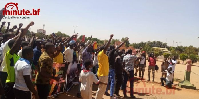 Après un escale chez le Moogho Naaba, les manifestants ont pris la direction de la place de la Révolution. Arrivés sur ces lieux, ils ont continué devant le camp Guillaume OUÉDRAOGO situé à quelques pas de la place de la Révolution. Devant le camp, ils se sont réunis pour chanter l’hymne national.