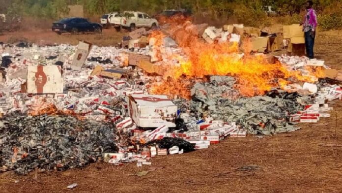 La Coordination Nationale de Lutte contre la Fraude (CNLF) a procédé, ce 8 décembre 2023, à l’incinération d’un lot de produits de tabac irrégulièrement importé au Burkina Faso. Ce lot est essentiellement composé de produits de cigarettes. Il s’agit exactement de 278 000 paquets de cigarettes d’une valeur de 222 400 000 FCFA.