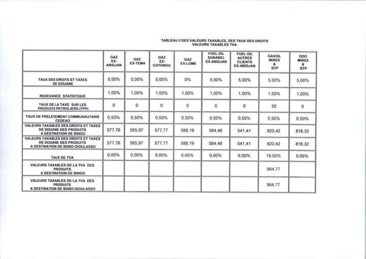 Quant aux prix des produits venant du dépôt de Bobo Dioulasso, ils sont fixés à la pompe à 745 F/ l pour le super 91, 975 F/l pour le pétrole, 670 F/l pour le gazoil et 645 F/l pour le DDO Boulangerie.
