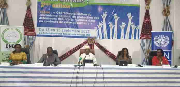 Les travaux de la deuxième édition du Forum national des défenseurs des droits humains organisé par la Commission nationale des droits humains au Burkina Faso (CNDH), se sont ouverts dans la matinée du 13 septembre 2022 à Ouagadougou. Placé sous le thème : « Opérationnalisation du mécanisme national de protection des défenseurs des droits humains dans un contexte de crise sécuritaire», ce forum s’étendra jusqu’au 15 septembre 2022 et reunira plus de 200 défenseurs des droits humains.