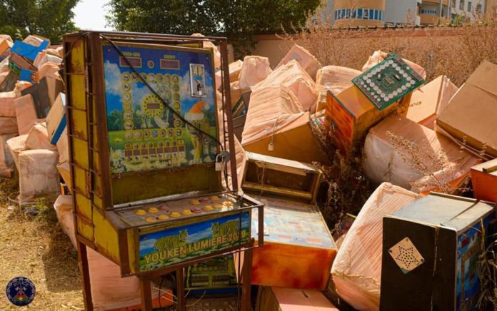 La police Nationale informe les populations que la pratique des jeux des machines à sous est contraire aux textes en vigueur. Toute organisation de jeux de hasard à caractère spéculatif et l’exploitation de tout établissement de machines à sous et casinos sur le territoire burkinabè doivent être soumises à une autorisation préalable des autorités compétentes conformément aux dispositions législatives et réglementaires de la loi N°027 du 08 mai 2008 portant réglementation des jeux de hasard au Burkina Faso et aussi le décret du 12 mai 2014 portant conditions d’exploitation des établissements de machines à sous. Partant de là, les services techniques des Directions générales de la police nationale et du trésor public font des contrôles inopinés de façon régulières pour s’assurer du respect de la réglementation. C’est ainsi qu’au cours d’un récent contrôle, à la date du 10 février 2021, plus de 5000 machines à sous ont été saisies.