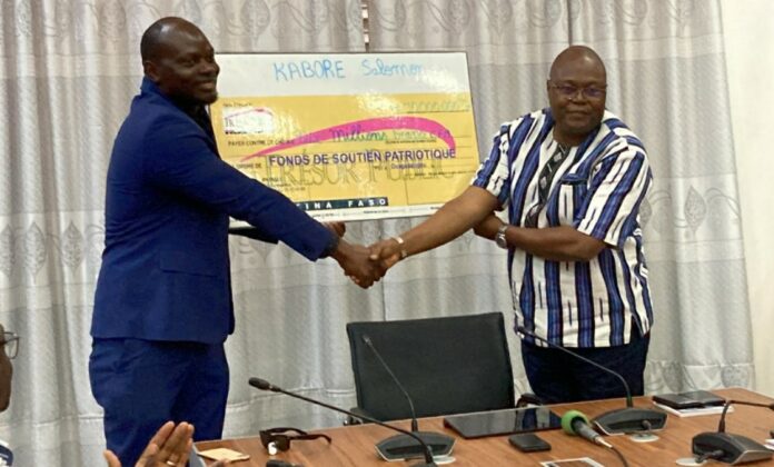 10 millions FCFA, c’est le geste de Salomon Kaboré, en soutien aux efforts des Forces de défense et de sécurité (FDS) et des Volontaires pour la Défense de la Patrie (VDP) engagés sur le théâtre des opérations. A l’issue d’un séjour au bercail, ce fils du pays a décidé de faire parler son cœur avant de regagner les États-Unis. Cette contribution, selon ses explications, est une réponse à l’appel à mobilisation lancé par le président du Faso, le Capitaine Ibrahim Traoré pour soutenir les actions de reconquête du territoire national.