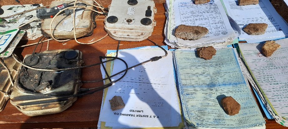 L’enquête a permis de saisir entre les mains de ces malfrats, 5 balises de transit, des documents composés des états de chargement, un cachet de la chambre de commerce contrefait et d’autres documents de la douane.