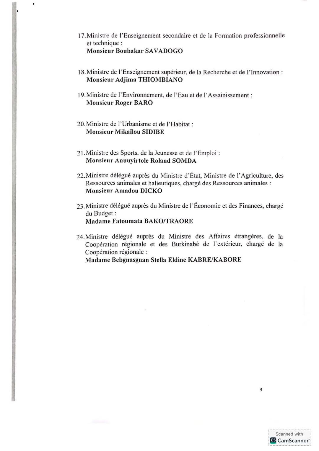 24h après la nomination du premier ministre, Rimtalba Jean Emmanuel Ouédraogo, les membres de son gouvernement ont été dévoilés. Nous vous proposons ci-dessous tous les membres du nouveau gouvernement, avec quelques changements à la tête de certains départements ministériels, dont la Fonction publique, l’Action humanitaire, la Défense nationale, la Communication…