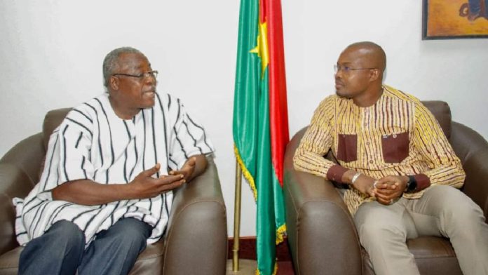 Le Ministre de la Communication de la Culture, des Arts et du Tourisme, Jean Emmanuel Ouédraogo a reçu en audience l’acteur de théâtre burkinabè, Hyppolite Wangrawa, par ailleurs Directeur du Théâtre de l’Espoir, ce 18 juillet 2023 à Ouagadougou.