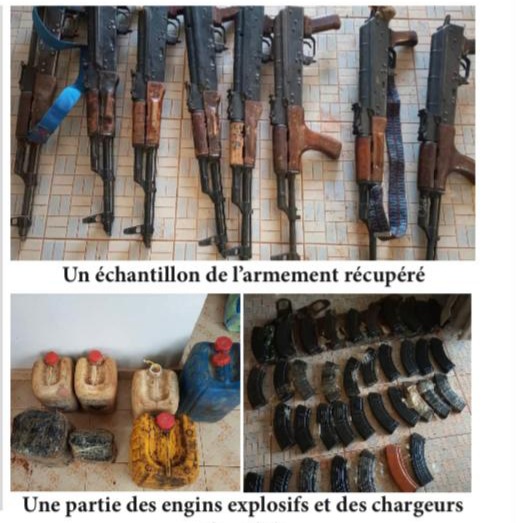 Parmi le matériel récupéré, on dénombre plusieurs armes, une importante quantité de munitions, plusieurs engins explosifs improvisés non amorcés, des moyens de communication et des motos.