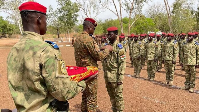 Le Chef d’État-Major de l’Armée de Terre a présidé, le mardi 13 mai 2025 au camp Thomas Sankara, la cérémonie marquant la fin du stage de qualification aux techniques commando de la 2ème promotion d’instructeurs, moniteurs et aides-moniteurs du Centre National d’Entraînement Commando (CNEC). Forte de 121 stagiaires tous issus du CNEC, cette promotion a subi six semaines d’épreuves intenses, mêlant discipline, endurance, rusticité et rigueur, pour se hisser au rang de formateurs commando.