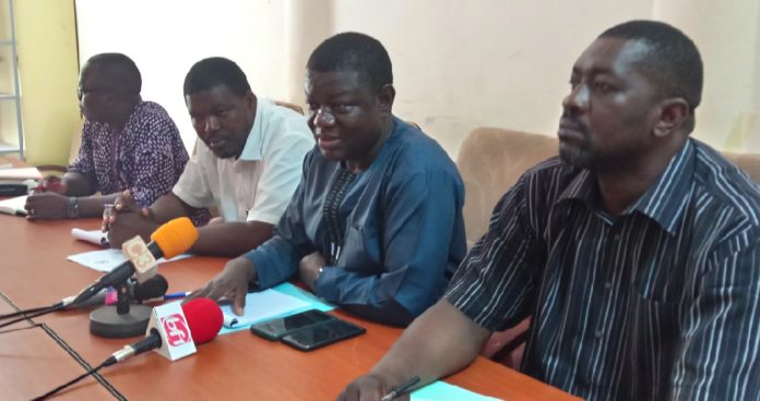 En conférence de presse, ce vendredi 23 juillet 2021, des travailleurs de la Caisse nationale de Sécurité sociale (CNSS) de la Confédération générale des Travailleurs du Burkina (CGTB), persistent et signent : « Lassané Sawadogo doit partir ».