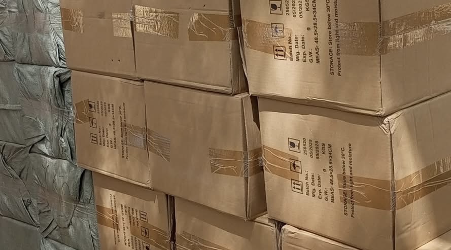 Les contrôleurs ont découvert 100 cartons de comprimés de chlorpheniramine maléate 4 mg USP, soit un total de 400 000 plaquettes, dissimulés dans un magasin servant de dépôt clandestin. Ces produits, introduits frauduleusement sur le territoire national et en provenance de Chine, sont estimés à une valeur marchande d’environ 20 millions de francs CFA.